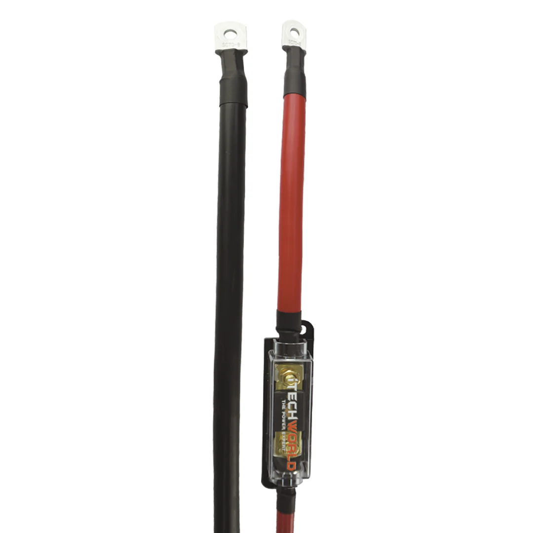 The 00AWG Inverter Cable - 250A Fuse comes with two 70mm2 cables and a 250A maxi fuse used for connecting your 2000w inverter and battery.