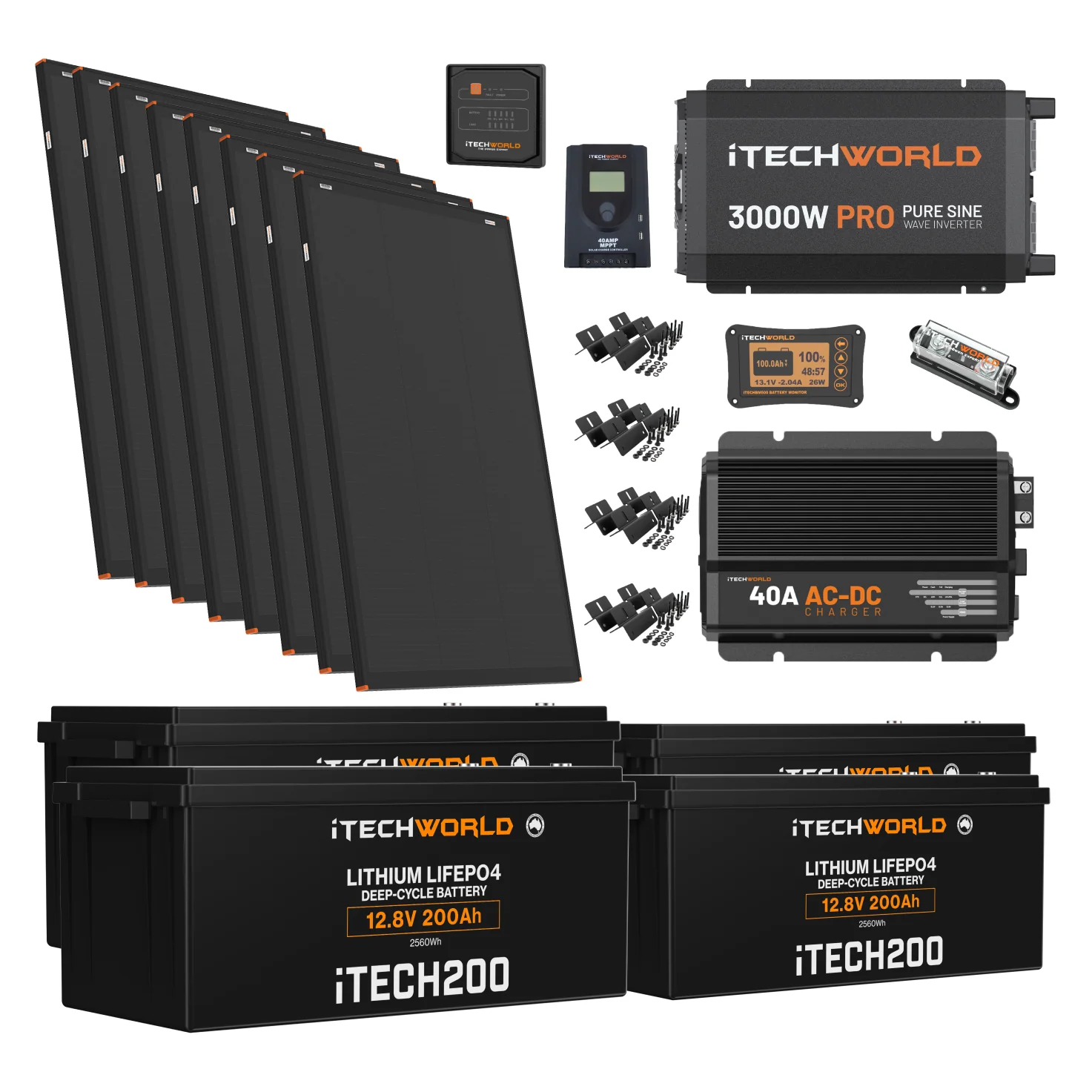 In this iTechworld 10.24 KWH Platinum lithium caravan kit you will receive: