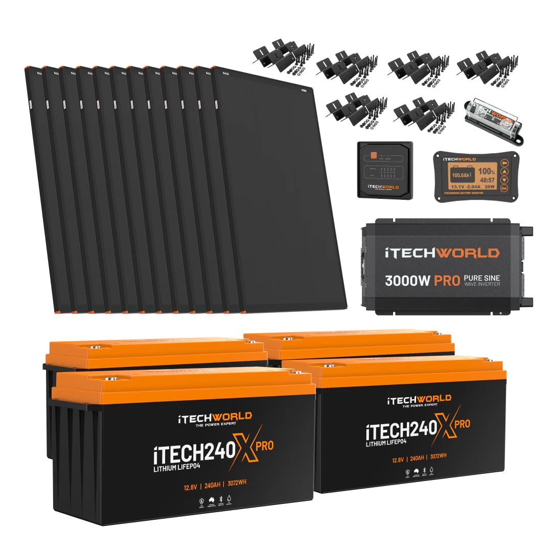 Our advanced lithium batteries and solar panel systems are designed to empower you with sustainable, reliable energy, wherever you choose to set up camp. Embrace the future of energy independence and harness the power of the sun with the 12.28kWh Off Grid System Pro from iTechworld.