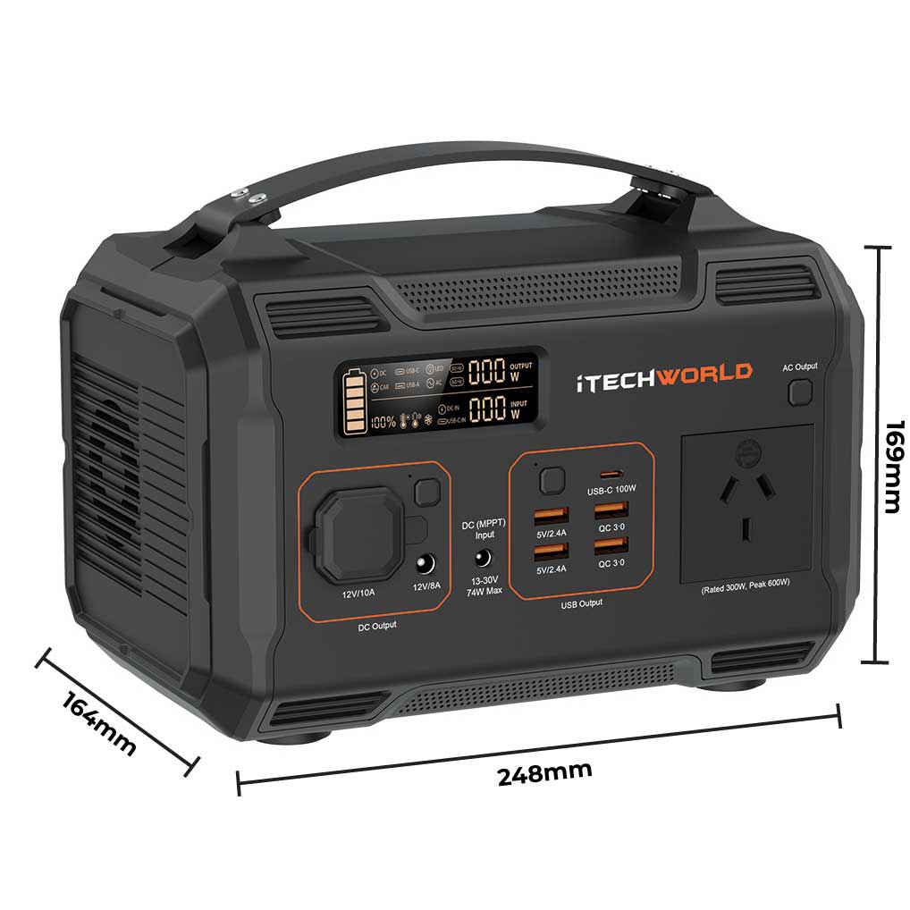 As standard in the iTechworld Power Station range, the PS300 features the safest lithium technologies available including over-charge, over-discharge, over-current, over-load, short-circuit, and over-temperature protection.