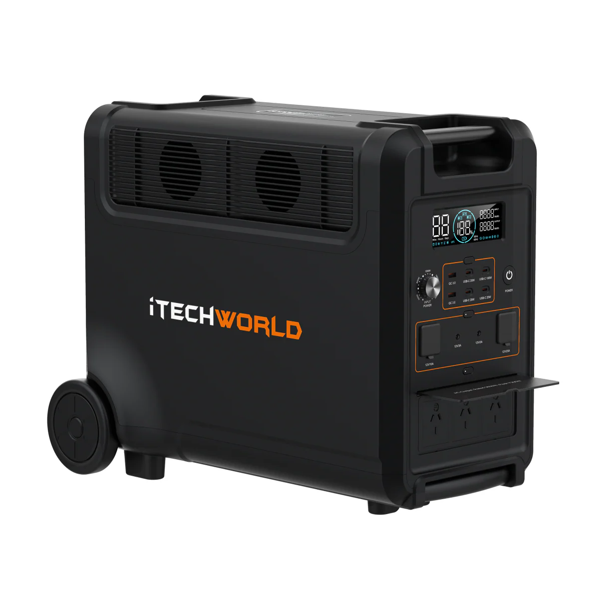 Powered by an impressive 300Ah lithium LiFePO4 battery, the PS3600 PRO is your perfect partner to keep you powered no matter how big or small the situation. The PS3600 PRO is a versatile power solution that can run your caravan off the grid and has enough power to back up your home. The PS3600 PRO can charge quickly using iTechworld solar panels while on the go. With advanced battery protection and a sleek design, this power solution is lightweight and powerful.